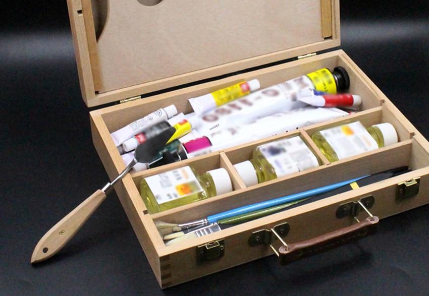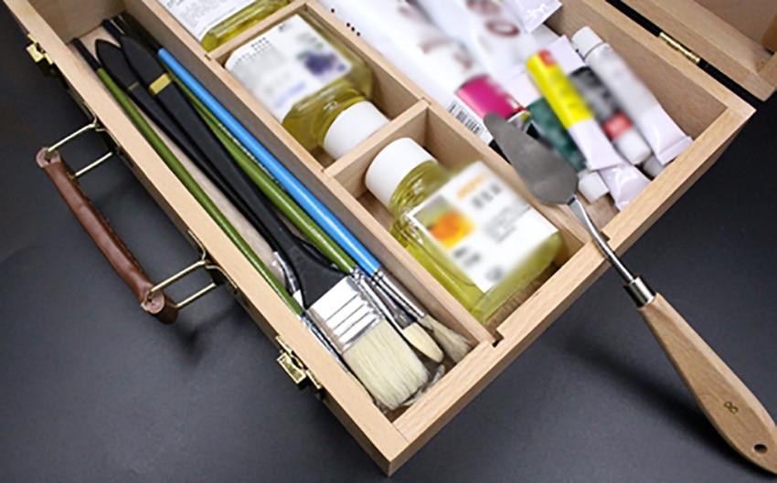 This antique-looking briefcase is an interesting, yet pragmatic choice for the storage of your painting supplies, and will make it way easier to carry them around all over town with you on your artistic escapades. The total size of the briefcase is 327*247 mm. The briefcase is fitted with golden metal clasps, and a metal handle which gives it a classic look and feel.
